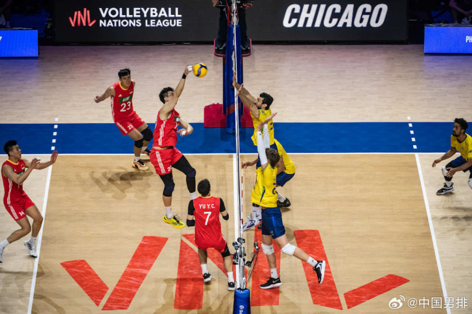北京时间6月27日,中国队在2025年世界男排联赛美国芝加哥站比赛中以0比3不敌巴西队。