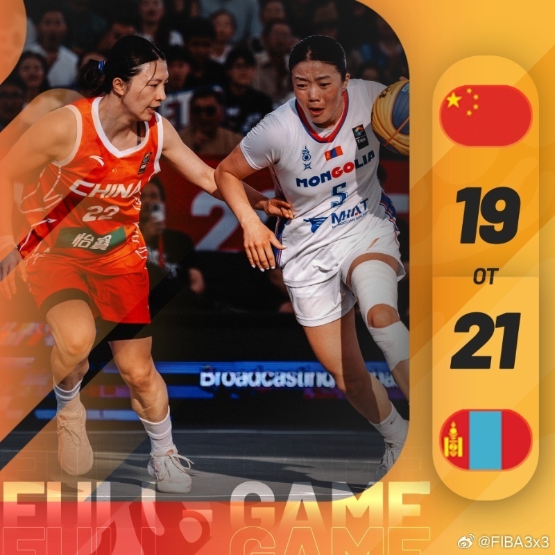 6月27日,在蒙古国乌兰巴托进行的2025年三人篮球世界杯淘汰赛中,中国女队以19比21不敌蒙古国队,遗憾无缘八强。